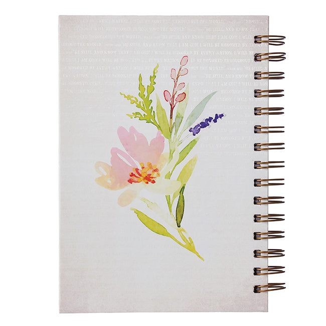 Watercolor Collection wirebound large journal, with foil stamped title and 192 lined pages. Hardcover 6" x 8.25". Lay-flat convenience. Be Still.