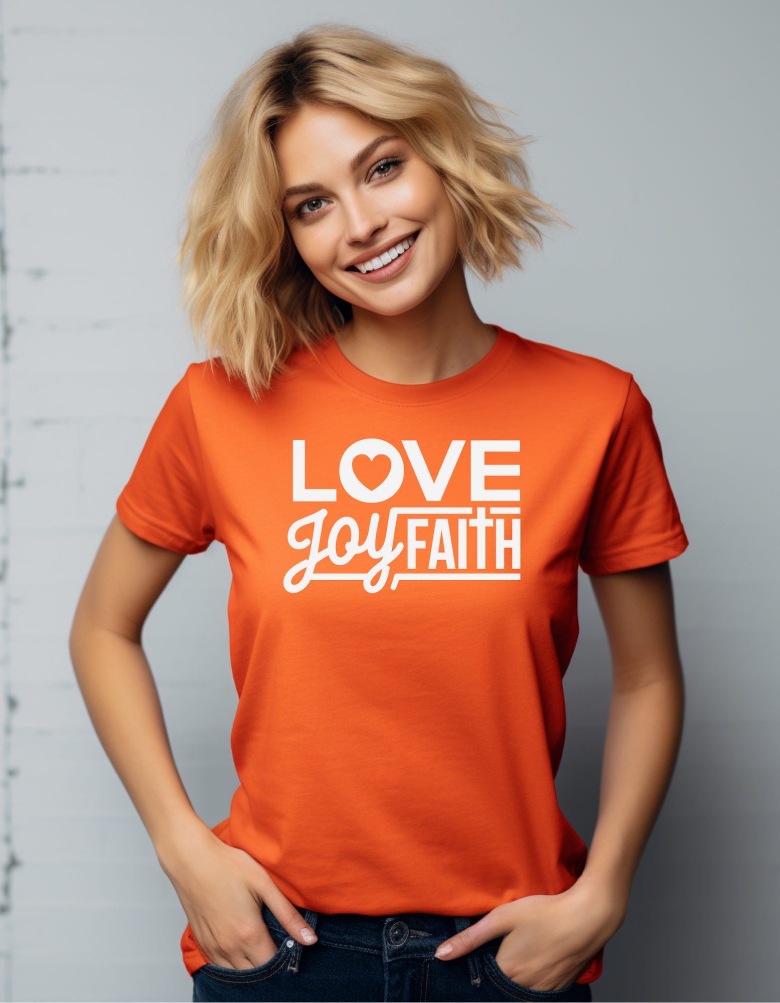 Embrace your faith with our "Love Joy Faith" Christian T-shirt, designed to inspire and uplift. This thoughtfully crafted shirt features a powerful and symbolic design that beautifully captures the essence of our Christian beliefs.