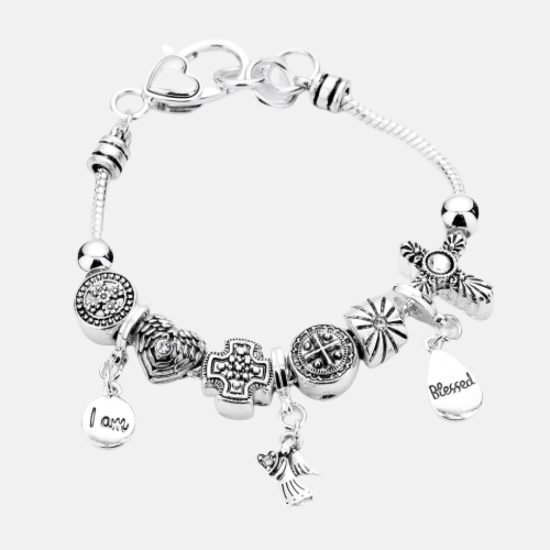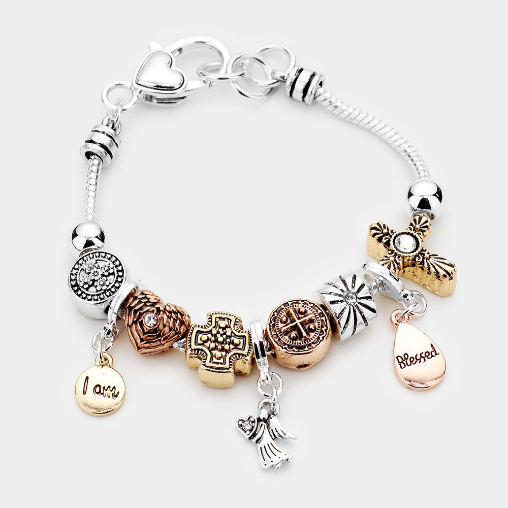 I am Blessed Angel Charm Multi Beaded Bracelet